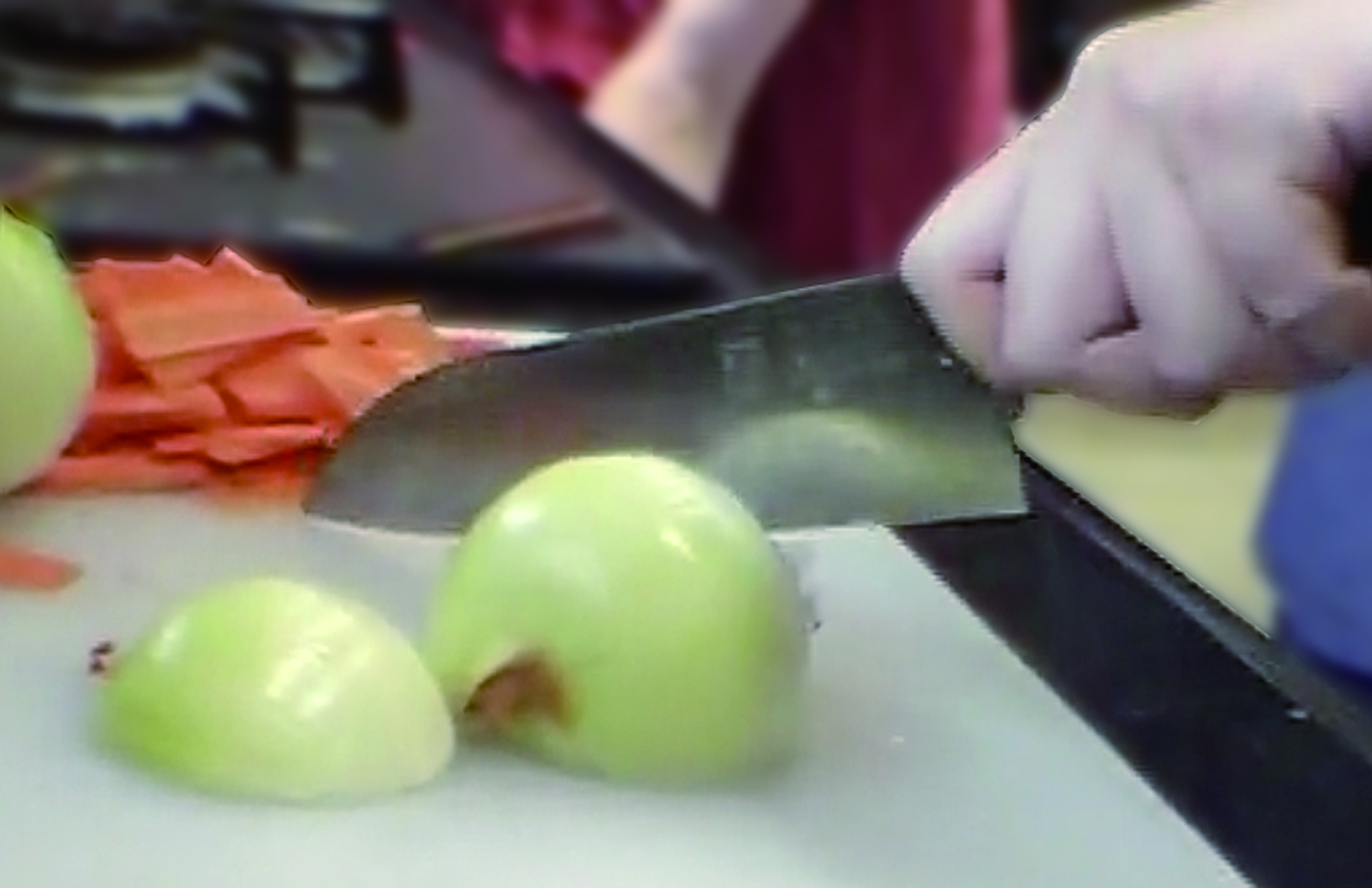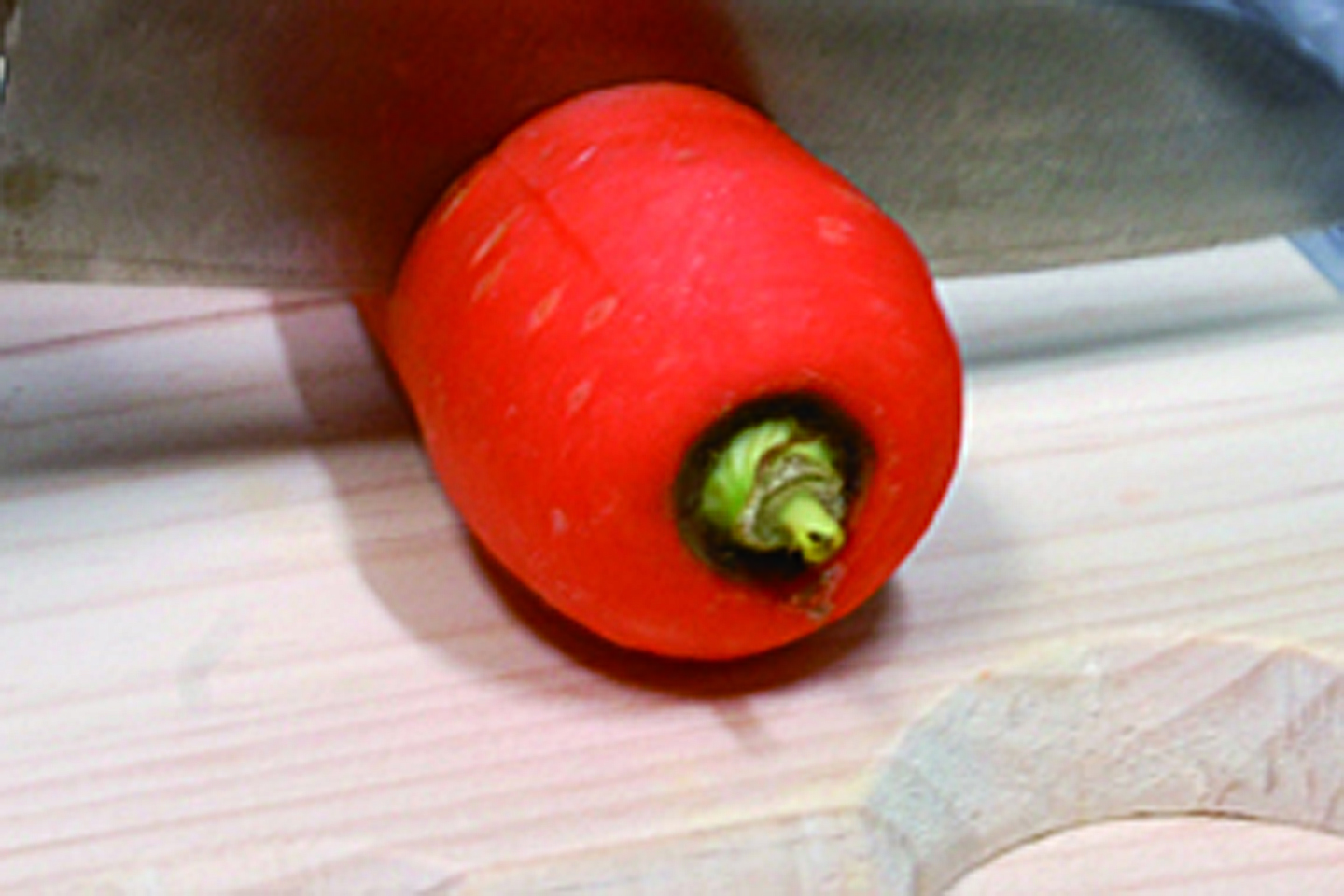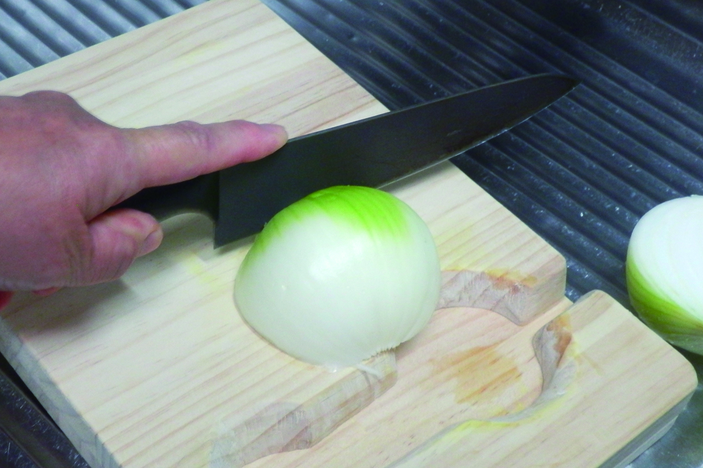 - 片手だと、玉ねぎのような食材を固定できずに転がってしまう