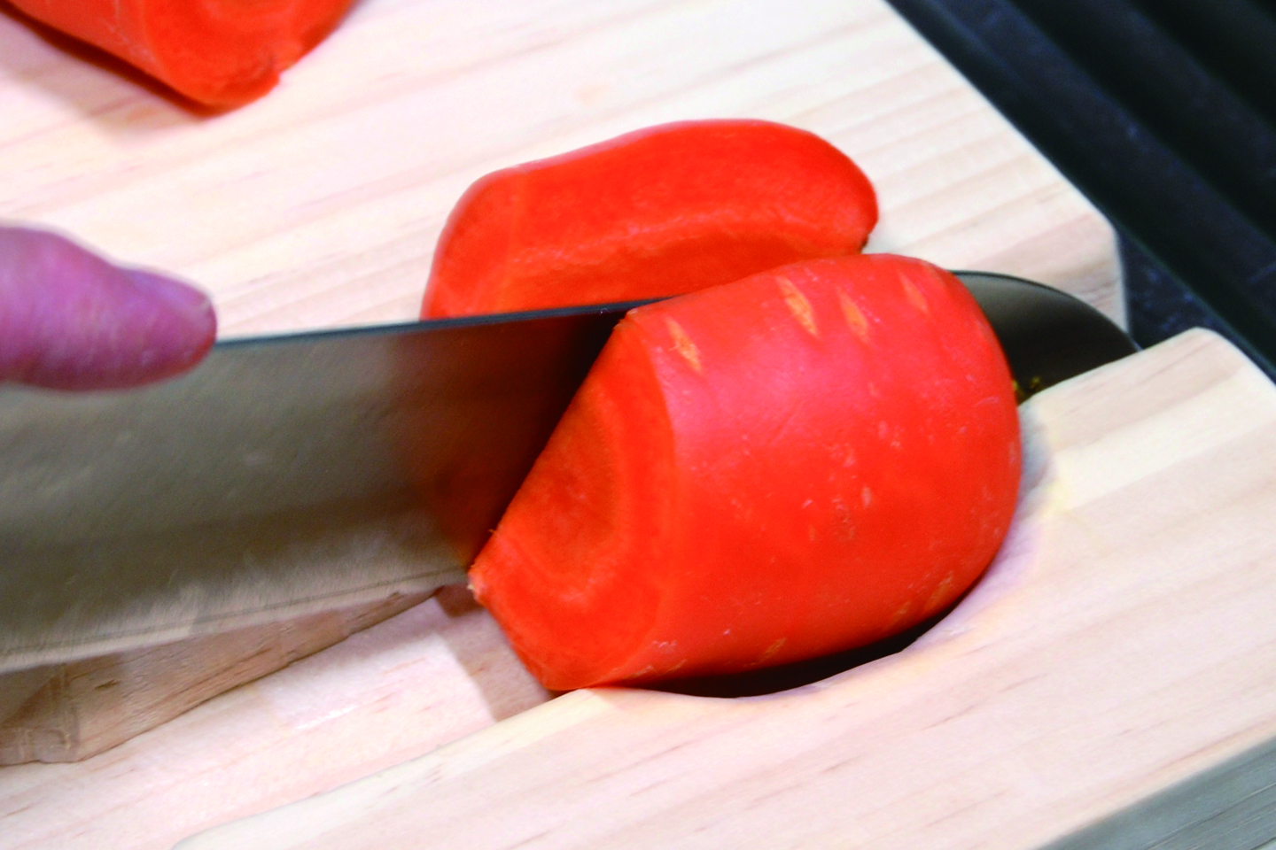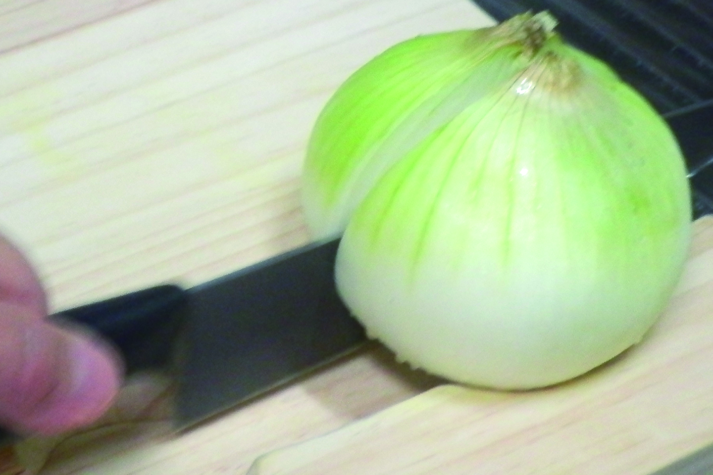 - 片手だと、玉ねぎのような食材を固定できずに転がってしまう